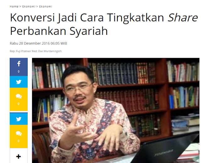 Menurut Pakar Keuangan Syariah M. Syafi'i Antonio mengatakan, untuk meningkatkan pangsa pasar industri keuangan syariah maka Bank Syariah yang masih dalam bentuk unit usaha syariah (UUS) didorong untuk melakukan konversi ketimbang Spin Off. Konversi bank syariah ini dinilai lebih efisien karena permodalan tidak akan terpecah.