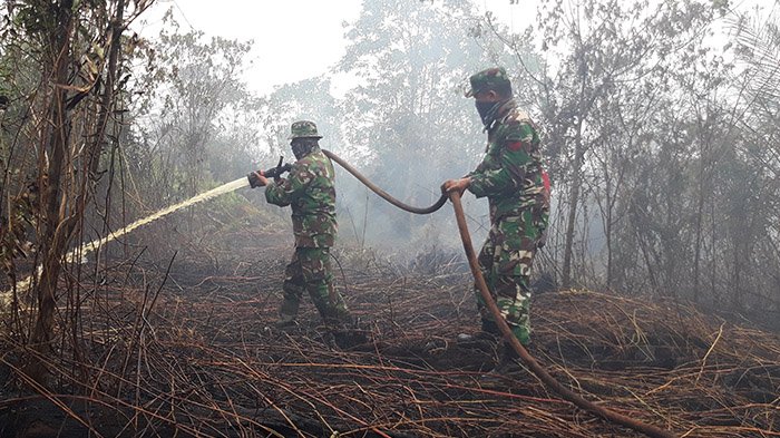 Lahan yang terbakar di sana mencapai 30 hektar. 75 personel gabungan TNI/Polri membantu upaya pemadaman di lokasi karlahut. (dow)